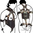 Das Geschirr ist also ein durch Gurte vollständig verstellbares SM-Fesselsystem sowie mehrere Accessoires auf einmal: Handfesseln, Armfesseln, Halsband, freie Brustfesseln ... verbunden mit Karabinerhaken, ein vollständiges SM-Outfit, damit ist keine andere Kleidung mehr nötig!