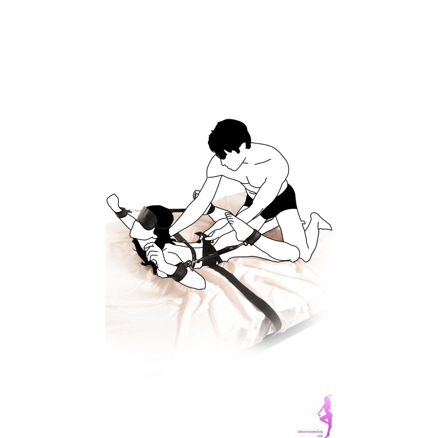 Dieses Set Gurte wird unter dem Bett befestigt, sodass Sie Ihren Partner daran fesseln können.
